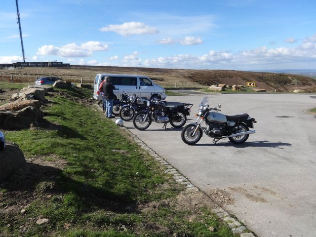 Had a nice blast over Holme Moss into Derbyshire... don't be fooled by the sunshine it was bloody cold up there. Route took me to Holmfirth where I got ripped off for a coke then over Holme Moss and back via Crow Edge, Dunford Bridge and Denby Dale a nice 50 mile round trip with some superb views, from the car park near the Holme Moss transmitter (bet Chris can see that from his back door) you could clearly see Drax power station which must be 50 miles away.I was joined by an Enfield and 2 lovely BSA A10,s in the car park.