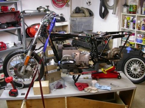 Further progress... Engine & tranny installed, since this picture was taken I've connected the final drive, installed the boot and torqued the swing arm pivots.
