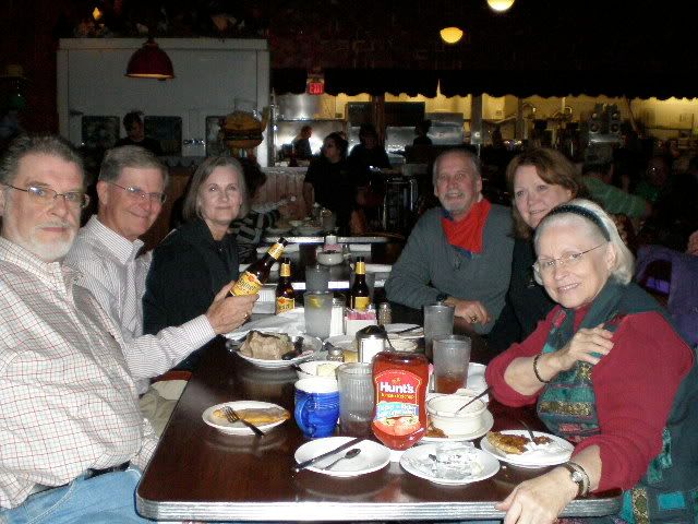 The usual suspects, left to right: Burt, Monte, Lynn, Mike, Theresa and Patsy. Shiner Bock appears to be the adult beverage of choice.
