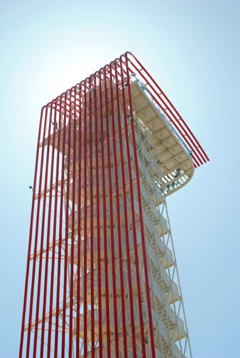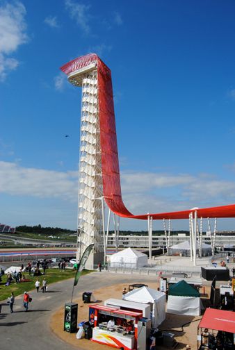 The landscape on the eastern side of Austin flattens out. The COTA Tower can be seen from several miles away. Twenty-five bucks to visit the top.