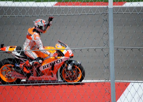 Turn 15, Lap One. In our face! Marquez stalked Pedrosa for half the race, passed Dani and never looked back.