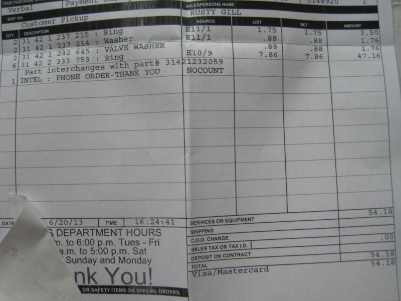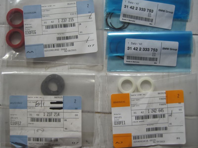 My rubber rings, new plastic valve washers, and new drilled wasahers should be available for me to pick up at MAX BMW on Thursday, so I will start to put things back together - let me know if you need anything else measured before it is too late!!