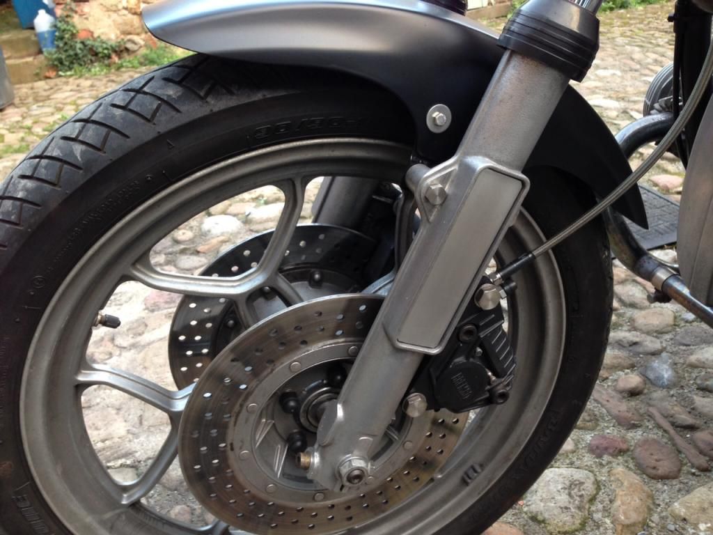 Thanks for the positive comments. Just chopped the original front guard down, shaped it with a sanding wheel and sprayed it satin black with a rattle can. Couple of stainless bolts and washers instead of the original rivets.