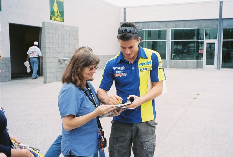 Look who dropped by for a visit! He caught a quick ride back to the pits via Moto Taxi. I got a chance to say 'hi' and make sure he was OK.