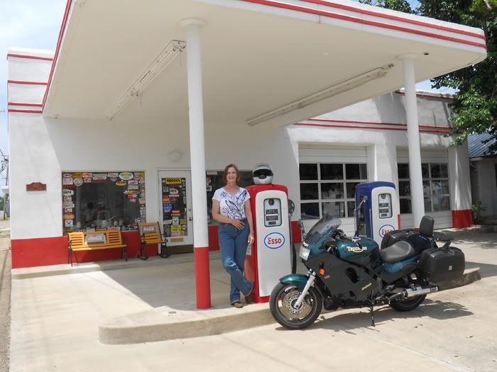 Restored ESSO gas station is now a bike and car museum. I tried the gas pump but no joy for any of the 19.9 cent per gallon gas.
