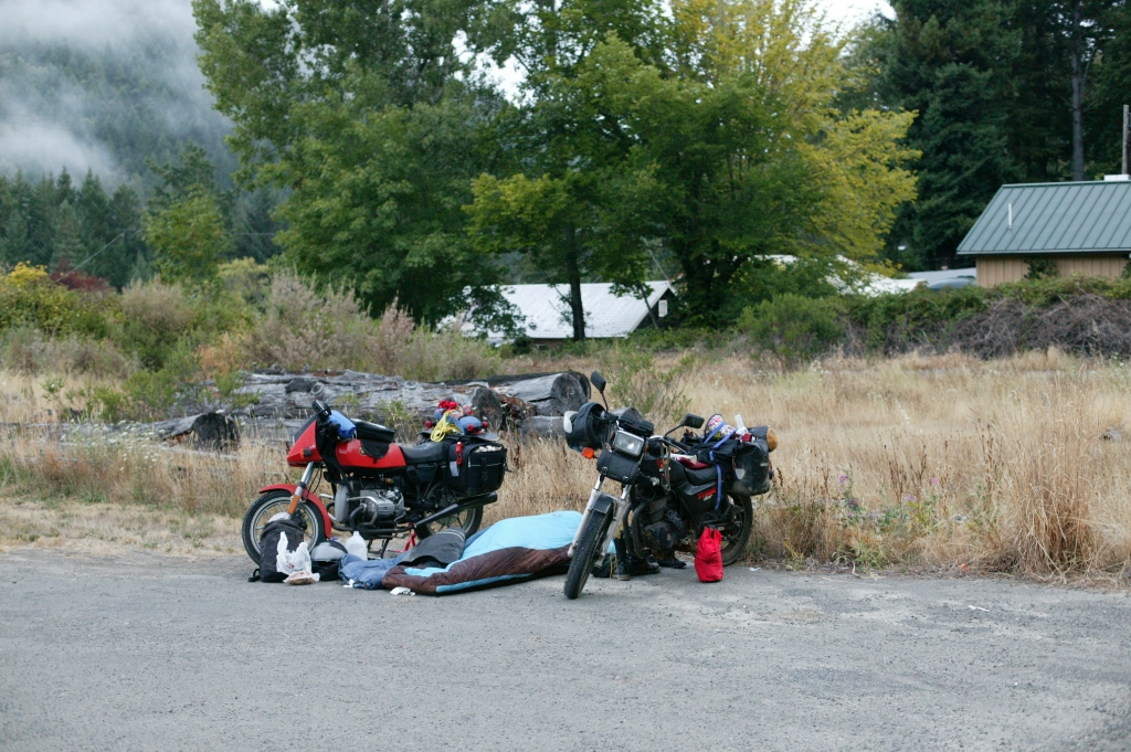 When I first started riding motorcycles I was 17. Since then I knew that one day I would take off on a long motorcycling adventure. 13 years later, I was able to make it happen when I found my R65 with 9K original miles in a warehouse in Downtown LA. I thought to myself, "This should work". I spent a couple months working out the bugs on the bike, then quit my well paying job and moved out of my apartment. My friend, who just learned to ride a motorcycle a week prior on her $1000 craigslist bike wanted to come along to Portland with me, so August 1st, we took off.