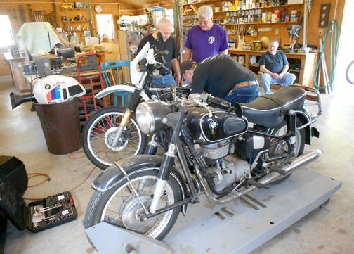 Pretty good turn out with some actual interesting work being carried out. Host Syd Holt welcomed the bunch to his 28x42 shop. Syd's obviously a woodworker as the building was full of oak lumber and tools to craft just about anything. He's also a BMW Airhead so the monster bike lift got some use.