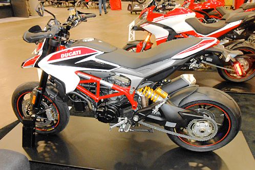 Ducati had a massive display of all their "Lose Your License" motorcycles. Their street trackers are ab fab!