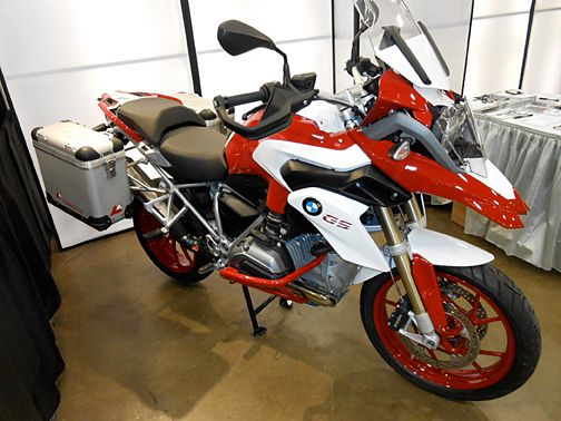 Stopped to visit with the guys at the BMWMOA booth. Got to lay hands on the new R1200GS "Toilet Seat" AV bike with it's custom paint job. Raffling it off they are but tickets are, well, I passed on throwing away that much money.