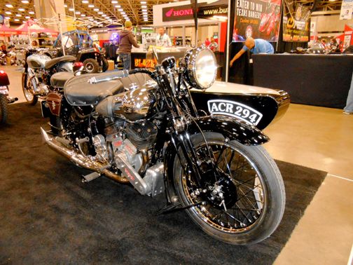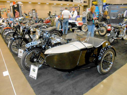 The Brough was an excellent resto complete with a side car. Mostly all black motorcycle on a black carpet is tough to get a decent photo. Gimme a break. :(