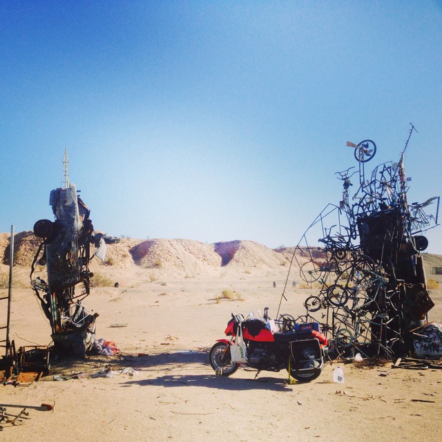 Okay, enough of these shenanigans. I need to get on the road before it gets dark. I decided to head to Laughlin, NV. I've never been before and it seemed like a good place to stop over and get a cheap room. It's also a place frequently visited by a good friend of mine, so I wanted to check it out. My cheap room ended up being $21, which was worth it because finding a nice place to camp in the dark, on foreign land isn't much fun. Oh, it's cold and the time just changed. My GPS says sundown is at 4:40PM, so I lost an hour. :/ Around sunset, I stopped at the Glamis Dunes for a short break. Watching all the folks having fun on their dirt bikes makes me wish I had a duel sport or something. My little BMW with street tires was having problems in the parking lot sand drifts. Maybe one day I'll get something with knobbies..............