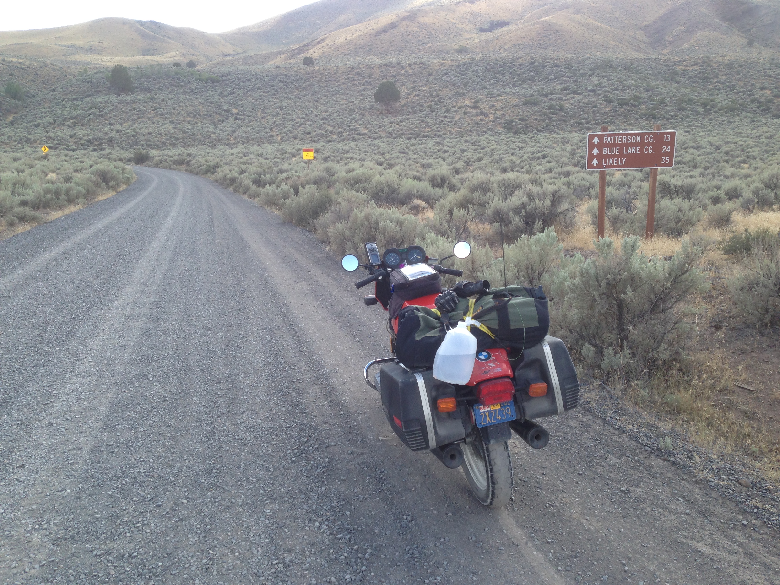 I wanted to get back to highway 395, and my GPS lead me here.  Nope, not going down this road.  My tires suck on this gravelly stuff.  There must be a better (paved) route over the mountain ridge.  Note to self; mount dual sport tires next trip.