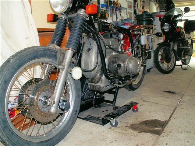 Disconnect brake rod, disconnect shocks (top or bottom) You might have problems if you have Krauser racks as they can get in the way. Disconnect driveshaft. Pull the swingarm pins and pull wheel, swingarm etc to the rear and tie it off.