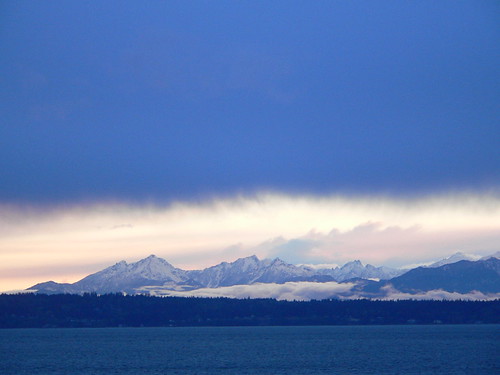 I can see Mt Olympus just fine without binoculars, from my office window right now across the bay.  And Mts Elinor, Defiance, The Brothers, Constance... Looks pretty much socked in like this 360 days/year...